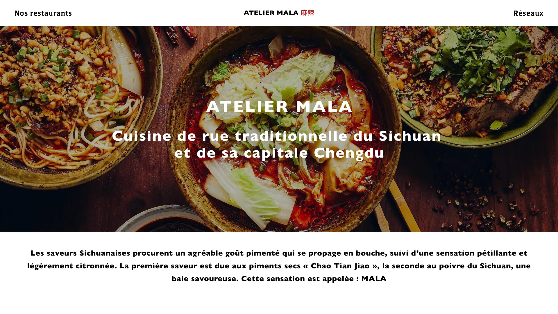 Site vitrine de Atelier Mala, cuisine de rue traditionnelle du Sichuan